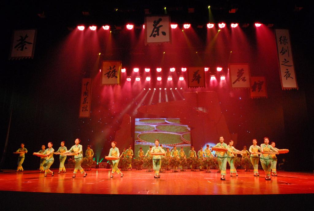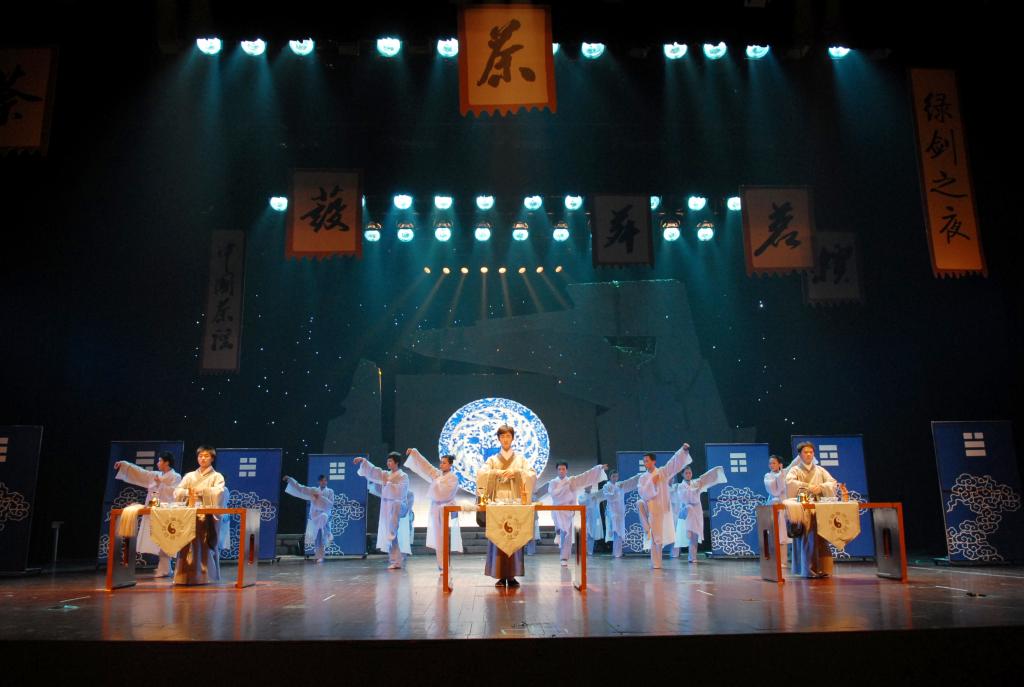 四是独特的表现形态,虽然有常规的歌舞,但茶文化中特有的茶艺形态,亦可以结合进入整台呈现。结合诸多的文化样式,比如歌舞,影像,茶艺,武术,说书、影像等……