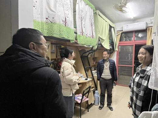 走访过程中,院领导与同学们亲切交流,从同学的学习、生活、思想动态等方面进行了解,勉励同学们勤奋学习,营造良好的学习氛围,做好考研和就业规划;叮嘱同学们提高安全意识、注意人身与财产安全、遵守宿舍管理规定、保持寝室卫生、增强网络安全意识等。同时,针对走访过程中出现的一些问题,院领导敦促同学们及时排查,并要求辅导员在平时对员工宿舍安全情况做好督查指导,进一步规范员工行为习惯。