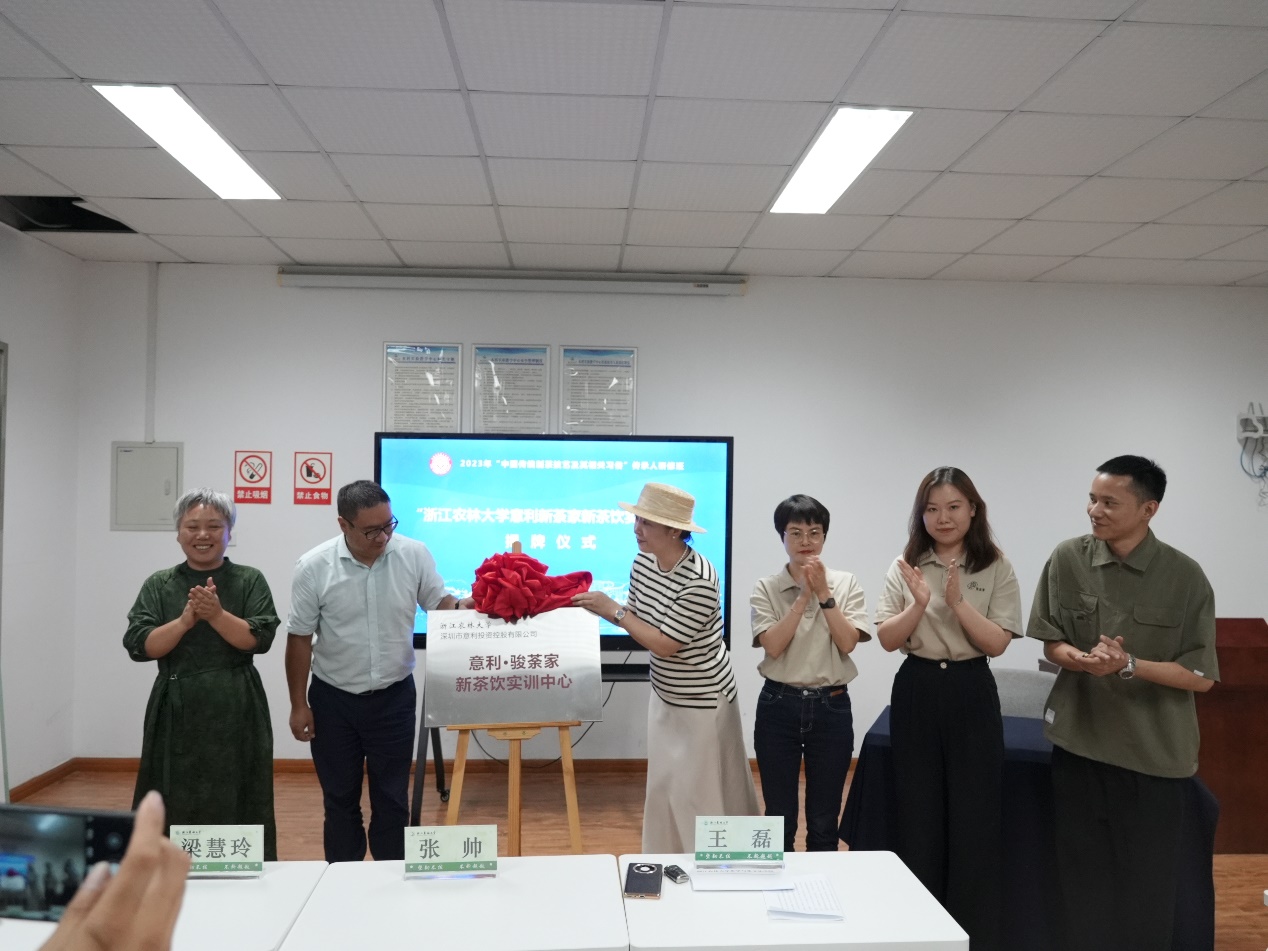 本次揭牌仪式恰处公司承办的2023年“中国传统制茶技艺及其相关习俗”传承人研修班开班期间,来自全国15个省份的44位国家级涉茶非遗项目的代表性传承人及高级管理人员作为特邀嘉宾共同见证了“意利·骏荼家新茶饮实训中心”的揭牌。