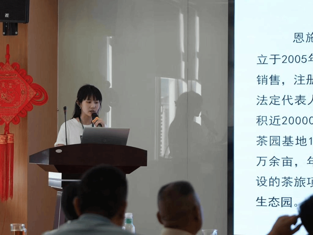 随后,在“茶与新媒体”主题座谈会上,研修班学员史冠辰、贾涛、吴佳丽分别分享了绿茶制作技艺(恩施玉露制作技艺)、绿茶制作技艺(蒙山茶传统制作技艺)、黑茶制作技艺(南路边茶制作技艺)的历史文化背景、传统工艺特色和现代发展情况。
