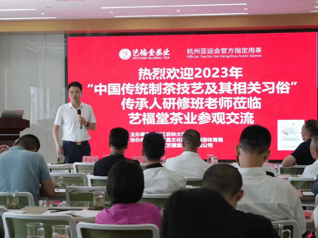 9月8日上午,由本期研修班班主任、K8经理王磊带队,研修班前往杭州桐庐艺福堂中央智慧工厂进行考察学习。桐庐县文化和广电旅游体育局副局长夏林青对“中国传统制茶技艺及其相关习俗”传承人研修班前来桐庐考察学习表示热烈欢迎,并在现场为研修班学员们介绍了桐庐近年来在非遗保护和传承方面的工作。