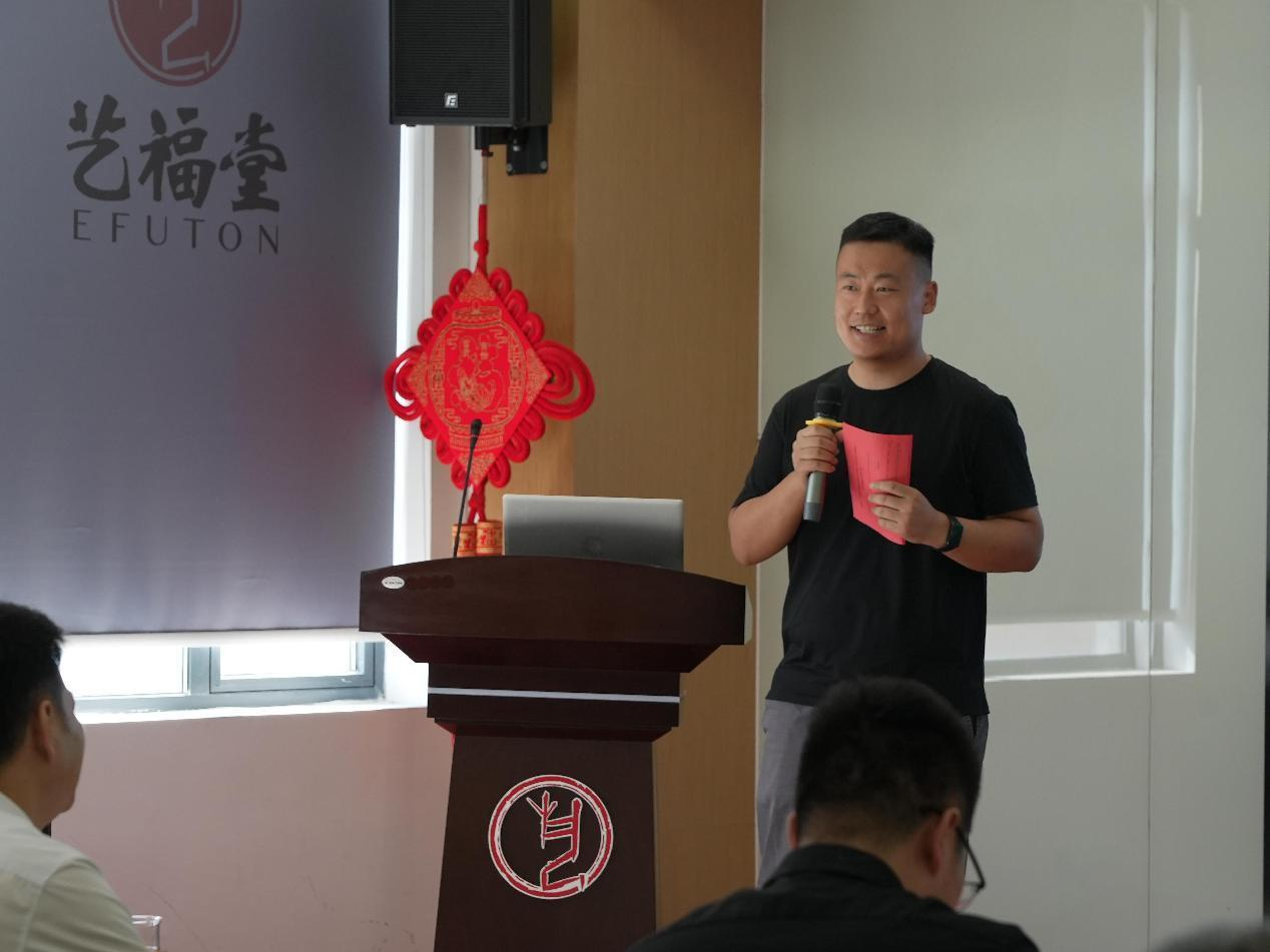 浙江艺福堂茶业有限公司董事长李晓军从创始人介绍、艺福堂茶业简介、创业感悟三个方面为学员们做了“艺福堂茶业创新创业之路”的分享: