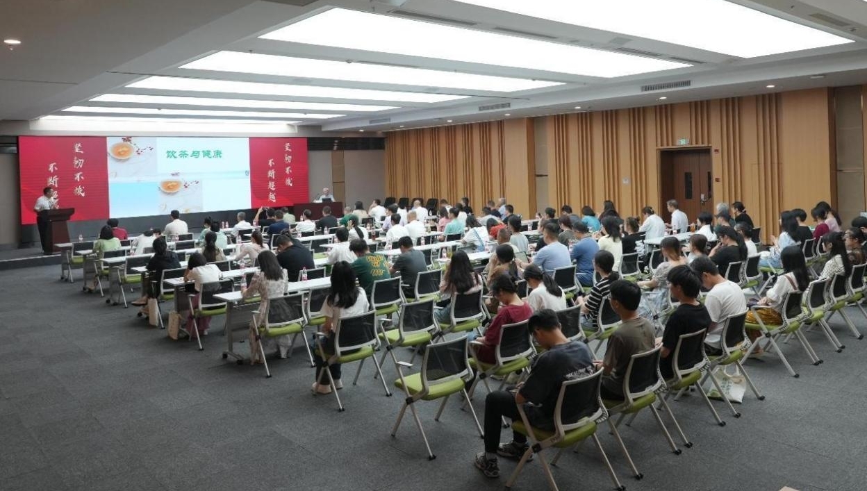 陈宗懋院士从茶叶与健康研究的历史起源和近四十年发展历程讲起,通过例举多项实验研究报告、观察分析实验数据,详细介绍了茶叶中功能性成分对人体健康的功效:抗氧化、提高人体免疫力、降压、降血脂、减肥、预防心血管疾病(代谢综合症)等,并解释了茶多酚与儿茶素的减肥机制,使学员们更深入地学习了茶叶生物化学品质分析方面的知识。陈宗懋院士同时指出,茶叶因含氟量高可以起到坚齿的作用,更有杀菌抗病毒、减轻过敏症、预防神经退化性疾病(减轻精神郁闷、帮助中老年人抵御精神抑郁症)、抗癌等功效。茶不是药,但饮茶可以预防和减轻许多人体疾病,可以作为生体调节剂增强体质、提高抗病性。
