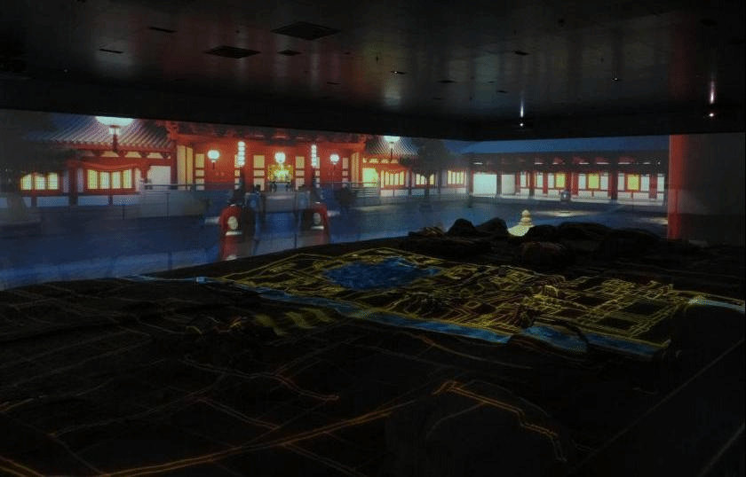 随后学员们来到地下参观重华宫正殿遗址、慈福宫及相关苑囿遗址,在中区大殿遗址数字化展厅的CAVE影像空间内,沉浸式地感受“埋在地下800年的古迹蕴藏着的南宋的风俗雅韵”。展区的影片为学员们系统地解读了重华殿遗址三个时期的历史演变历程及叠压打破状况,结合遗址地面现状,重点生长复原展示出孝宗时期遗址大殿的盛况。影片从临安繁盛、德寿宫苑、高宗寿典三个层次重现南宋临安的盛世繁华和德寿宫的宏大精致。全片结合故事线的挖掘串连,窥斑见豹,展现宋人的生活场景和文化习俗。