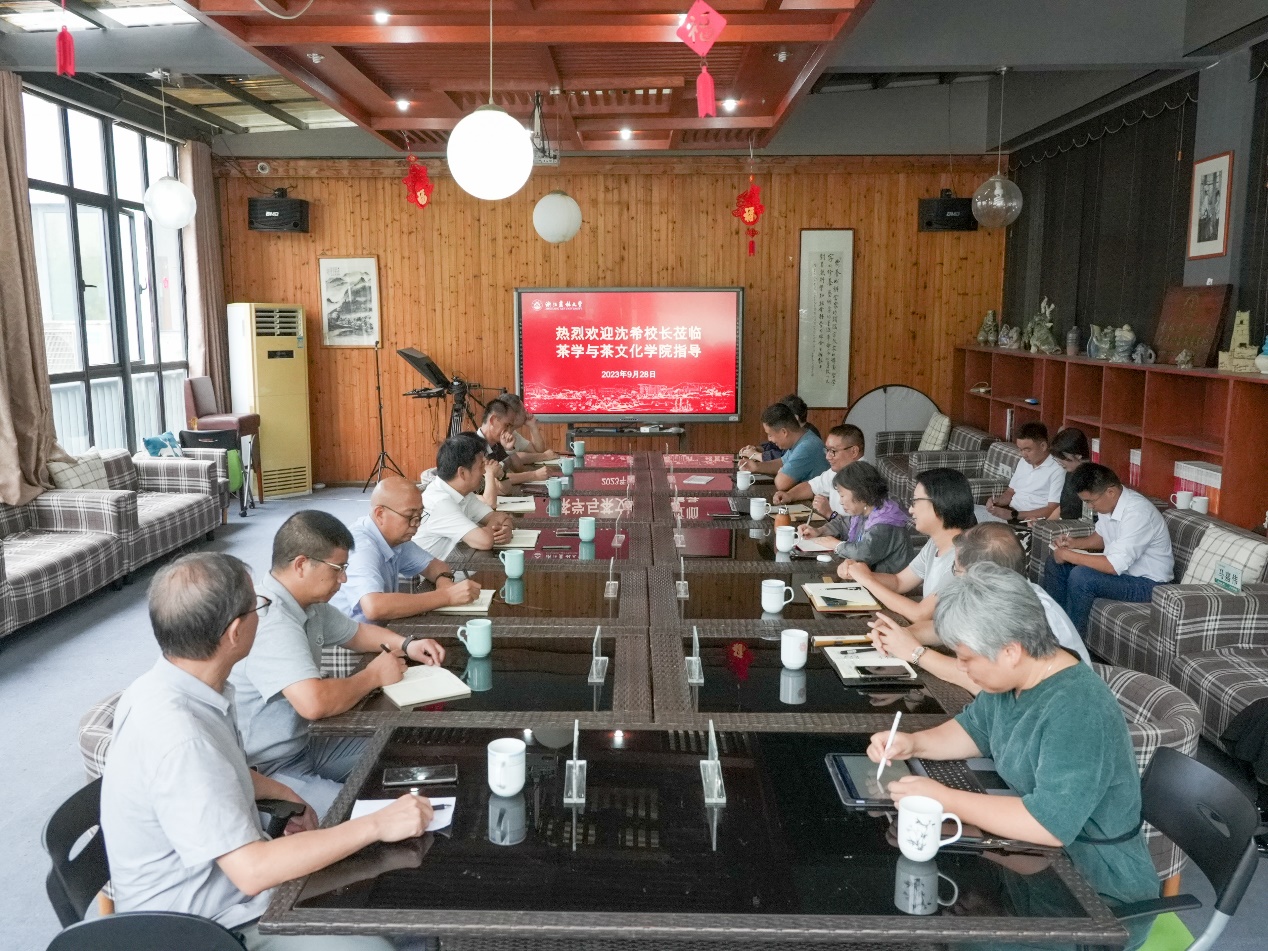 9月28日,董事长沈希一行到茶公司调研指导工作。茶公司名誉经理王旭烽、经理王磊、书记仲晓婷、副经理张帅以及教师代表参加会议。