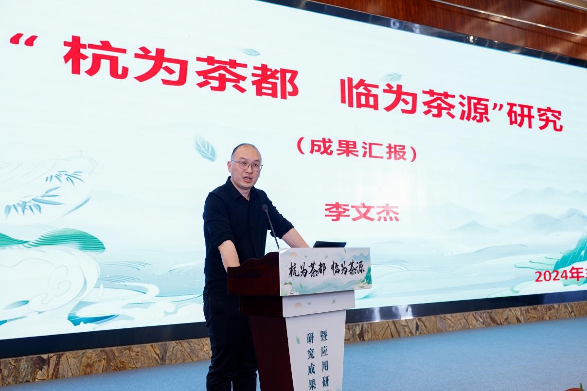 李文杰作为“杭为茶都,临为茶源”研究项目负责人做了主题发言。李老师从山水之源、茶业之源、人文之源、民间茶器之源、茶文化传播之源五个维度系统阐述了“临为茶源”的历史依据和人文佐证,展示了真实、丰富的“临为茶源”史料、文物图片和有关官方和专家的观点。