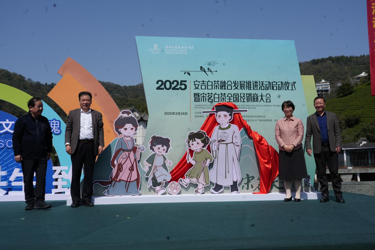 沈学政教授负责完成的安吉白茶非遗文创品牌发布会顺利召开,苏祝成教授担任了本次品牌发布会的揭幕人。此次设计围绕安吉宋茗白茶品牌角色IP茗茗家族展开,以茶和天下为核心理念,对传统茶非遗文化进行创造性转化和创新性发展。本项工作也是茶非遗博士创新站落地安吉后的首个成果,是茶文化师生团队对非遗文化的年轻化表达和传播的创新探索。