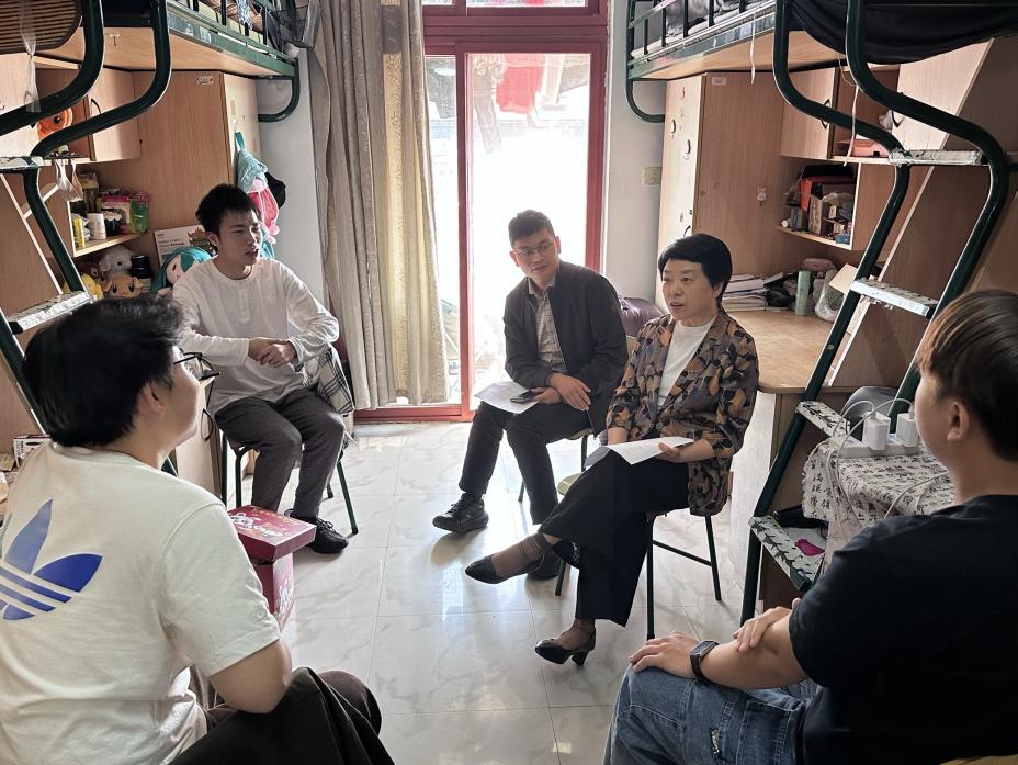425日下午,公司党委副书记施美红走访公司员工寝室,和寝室同学们亲切交流,关心慰问同学们的学习生活情况。公司党总支书记张路、公司辅导员陪同走访。