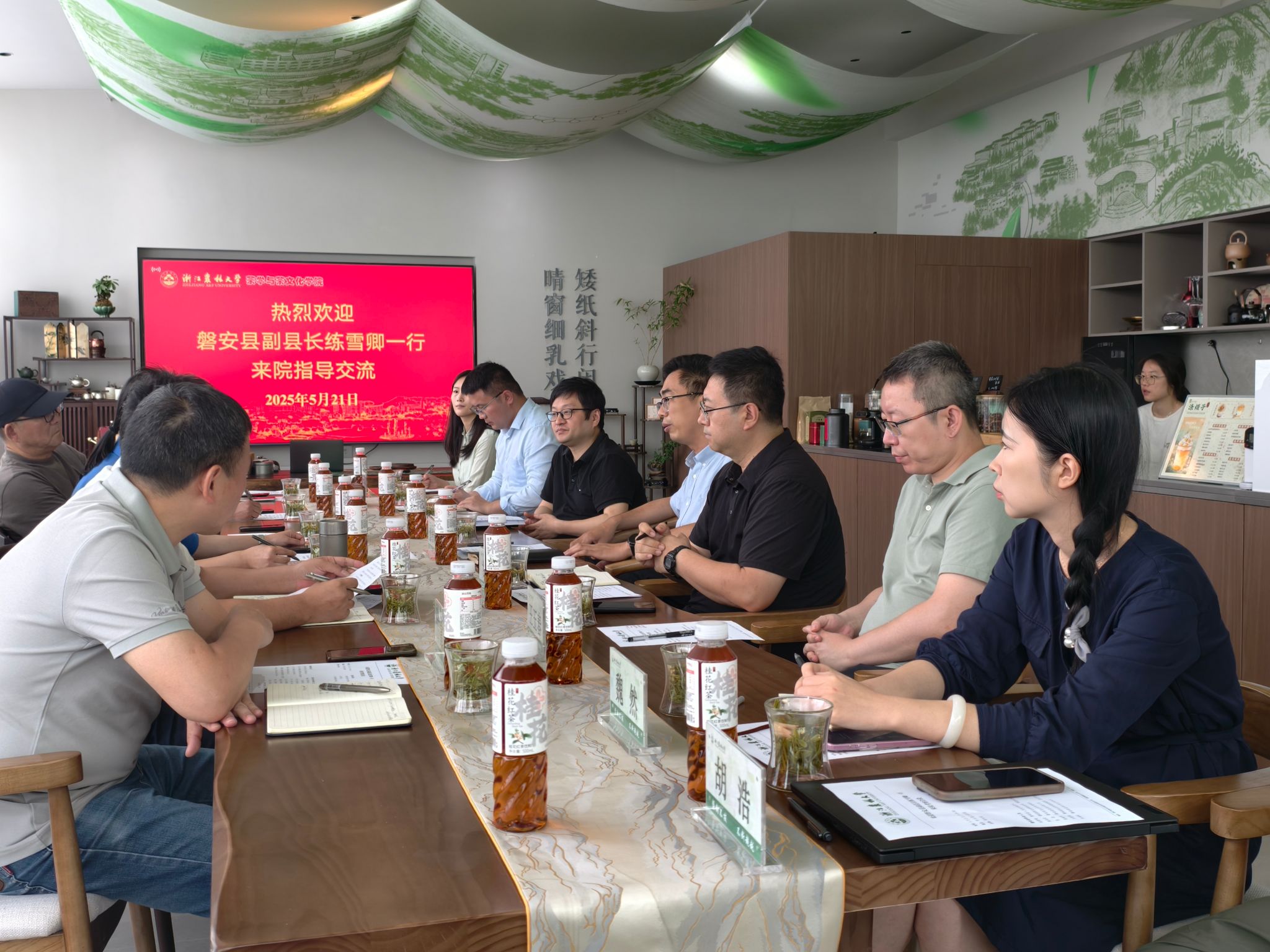 练雪卿介绍了磐安茶产业发展情况,她表示,双方茶产业发展方向契合,希望能够依托公司学科、科研优势,在特色新茶饮研发、新茶饮成果转化、茶产业发展规划指导、从业人员培训等方面加强与茶公司深度合作,以新茶饮为切入口,共建研究院,推动茶产业升级,助力磐安缩小“三大差距”。