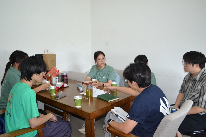 除了了解松阳的茶产业总体情况,实践团也走访了茶衍生产品制作的地方。在五心书院除阅读、品茗外,可以体验与茶相关的手工活动——制作茶染和非遗茶香珠,其中茶染的主要原材料就是夏秋茶制成的红茶茶末,是利用夏秋茶的好方法。在屿山空——浙江省级非遗茶空间,可以品尝到各种新茶饮产品,还有茶香鸡,由松阳香茶和中药材特研发而成的烤鸡。在绿茗峰茶业共富工坊,了解了工坊以就业增收、便民服务、技能提升三方面打造共富,也了解了夏茶的生长现状和目前的采售情况。