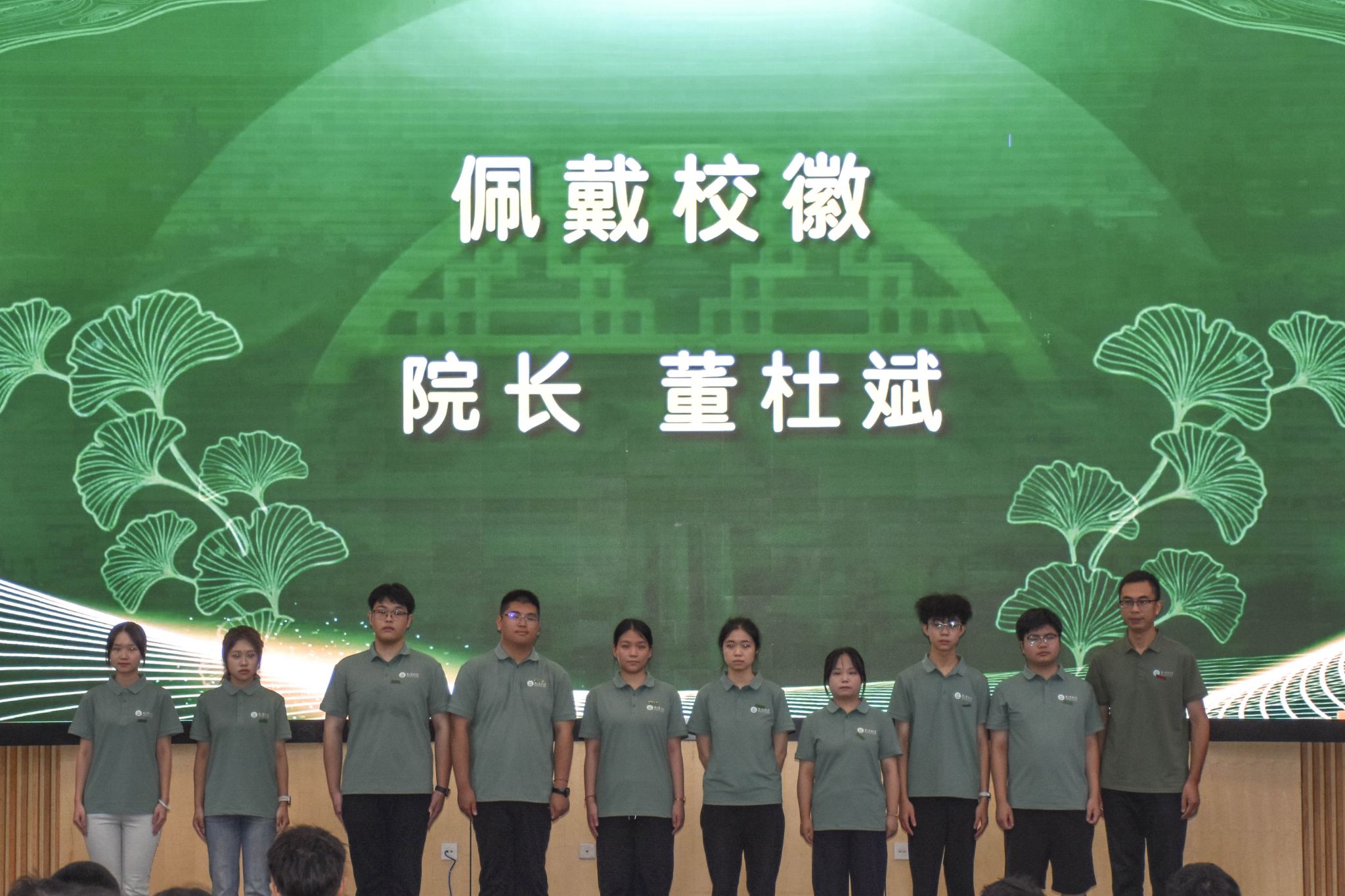 开学典礼在雄壮的国歌声中隆重开启。随后进行第一项议程,经理董杜斌亲自为新生代表佩戴校徽,并向所有新生致以真挚的祝福。