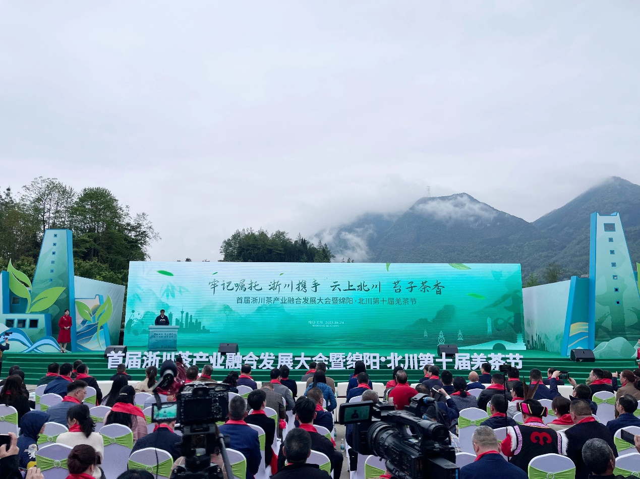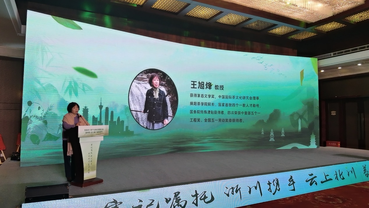 在“东西协作话三茶·浙川携手促振兴”为主题的首届浙川茶产业融合发展大会上,王旭烽教授作主题为“东西浙川合作、会师北川茶业——绵阳茶公司参与的使命担当”的报告,经理王磊与苏祝成教授参加圆桌访谈,分别就三茶统筹背景下的茶文化高质量发展及三茶统筹发展浙江实践进行了精彩的阐释,为推动浙川两地茶产业的高质量融合发展提出了建设性的意见,并共同为绵阳市茶叶学会及茶叶产业协会揭牌。